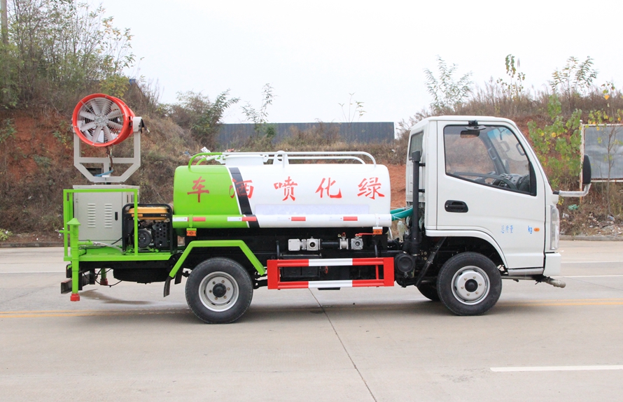 凱馬小型3方霧炮灑水車(chē)(藍牌)上裝功能:罐體材質(zhì)為厚4mm武鋼優(yōu)質(zhì)板材,封頭厚度:5mm,罐體尺寸2100mm×1100mm×700mm,車(chē)輛前部配有四個(gè)鋁合金噴嘴,罐體尾部采用大平臺,搭載30米車(chē)載式風(fēng)送噴霧機組,具有功力強、射程遠、穿透力強、霧粒附著(zhù)力強、覆蓋范圍廣、可以實(shí)現精量噴霧等特點(diǎn),另安裝綠化灑水高炮(炮噴射形狀可調節:直沖、大雨、中雨、毛毛雨、霧狀、可連續調節,360°旋轉),另配消防接口,自流閥,濾網(wǎng),帶自吸自排功能。